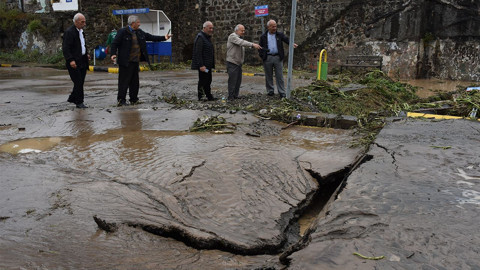 Trabzon'un merkez ilçelerinden Ortahisar'da sağanak yağış etkili oldu. Yağış nedeniyle bazı cadde ve sokaklarda su birikintisi oluştu, rögarlar taştı.Yağışa sokakta yakalanan vatandaşlardan bazıları şemsiye ile korunmaya çalışırken, bazıları ise iş yerlerine sığındı. Yollarda su birikmesi nedeniyle trafik akışında zaman zaman aksama yaşandı.EV VE İŞ YERLERİNİ SU BASTI Şiddetli yağış dolayısıyla bazı araçlar yolda mahsur kaldı, birçok noktada ev ve iş yerlerini su bastı. Ekiplerin müdahalesiyle araç ve iş yerlerinde mahsur kalan vatandaşlar kurtarılırken, yağıştan etkilenen iş yerleri ve evlerin zemin ve bodrum katlarındaki temizlik çalışmaları sürüyor.Yağış nedeniyle Pazarkapı Mahallesi'ndeki otoparkta zarar gören araçlarda hasar tespit çalışması başlatıldı. Taşkın ve kaya düşmelerinin de meydana geldiği bölgede, Büyükşehir Belediyesi Trabzon İçmesuyu ve Kanalizasyon İdaresi Genel Müdürlüğü (TİSKİ), Ortahisar Belediyesi, itfaiye ve AFAD ekipleri de çalışmalarına devam ediyor.Karşıyaka Mahallesi'nde evini su basan Lütfiye Sivri, AA muhabirine, köpeğini beslemek için bahçeye indiğini belirterek, "Köpeğim neredeyse boğulacaktı, tavuklarım suyun içinde kaldı. Evimin altını su bastı. Domates, patlıcan, bahçemde hiçbir şeyim kalmadı ama ölüm olmasın. Çok büyük zayiatımız var." dedi.BÜYÜKŞEHİRDEN AÇIKLAMA GELDİ Büyükşehir Belediyesinden yapılan açıklamada, ekiplerin şehrin dört bir yanında yoğun çalışma yürüttüğü bildirildi. Aşırı yağışların kent genelinde sel, toprak kaymaları ve su taşkınlarına neden olduğu belirtilen açıklamada, şunlar kaydedildi: "Sabah saatlerinden itibaren 83 su taşkını ihbarı alınmış ve ekiplerimiz anında harekete geçmiştir. TİSKİ Genel Müdürlüğü, Yol Bakım ve Onarım, Park ve Bahçeler ile İtfaiye Dairesi Başkanlıklarımıza bağlı 460 personel, 16 vidanjör, 20 kanal temizleme aracı, 4 kombine kanal açma aracı, 24 iş makinesi ve 50 araçla şehir genelinde çalışmalara devam ediyor."Açıklamada, "Vatandaşlarımızdan heyelan ve su taşkınlarının yaşandığı noktalarda özellikle trafo ve direklerin bulunduğu yerlerde elektrik çarpmalarına karşı dikkatli olmalarını rica ediyoruz." uyarısında bulunuldu.TOPRAK KAYMASI YAŞANDI Ortahisar Belediyesinden yapılan açıklamada, ilçede şiddetli yağış sonrası taşkın, su baskını ve toprak kaymaları yaşandığı bildirildi. Bazı mahallelerde ev ve iş yerlerini su bastığı, heyelan sonucu istinat duvarlarının yıkıldığı, bağlantı yollarının ulaşıma kapandığı belirtilen açıklamada, Ortahisar Belediye Başkanı Ahmet Kaya'nın da yağıştan etkilenen mahallelerde incelemelerde bulunduğu kaydedildi.Kaya, Trabzon'un bugün sel ve heyelana maruz kaldığını belirterek, şu değerlendirmede bulundu: "Çok ciddi bir afet oluştu. Saat 04.00'ten itibaren çok şiddetli yağış meydana geldi. Bu yağışa bağlı olarak birçok mahallemizde su taşkınları, heyelanlar ve çökmeler oluştu. Çamoba Mahallemizde menfezin yetersizliği nedeniyle suları taşıyamadığı için yol yarıldı. Ekiplerimiz burada suların binaya ve binanın dışında bulunan hayvanlara zarar vermemesi adına gerekli çalışmayı yaptılar."Kaya, ihbarlara da dikkati çekerek, "44 mahallemizde ciddi sıkıntılar oluştuğu yönünde bilgiler geldi. Başta Fen İşleri ve Temizlik İşleri Müdürlüğümüz olmak üzere bütün kadrolarımızla sahadayız." ifadelerini kullandı.