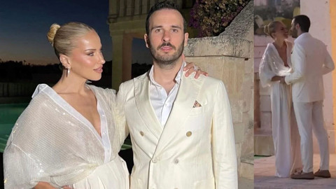 Burcu Esmersoy ile Nazım Akmandil’in tanışma hikâyesi oldukça ilginç. Çift, bir Berlin uçuşunda pasaport kuyruğunda tanıştı. Burada başlayan sohbet kısa sürede aşka dönüştü. Çift, 2 Eylül 2023’te İtalya’nın Puglia bölgesinde evlendi. Ardından İstanbul’da yaklaşık 250 davetlinin katıldığı ikinci bir düğün düzenlediler. Esmersoy’un 1976 doğumlu olması nedeniyle çift arasında yaklaşık 16 yaş fark bulunuyor.
