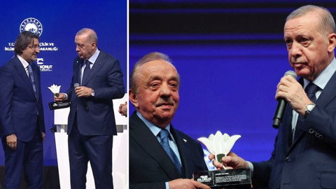 Erdoğan, depremlerin ardından bölgede inşa çalışmalarına katkı veren 42 kurum, kuruluş ve özel sektör temsilcilerine plaket verdi. Erdoğan, Ziraat Bankası Genel Müdürü Alpaslan Çakar ve Cengiz Holding'in sahibi Mehmet Cengiz'e plaket verirken dikkat çeken anlar yaşandı.