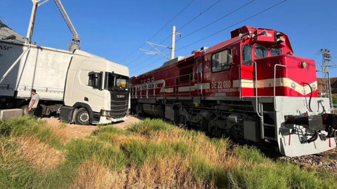 Kırıkkale'de hemzemin geçitte yük treni tıra çarptı