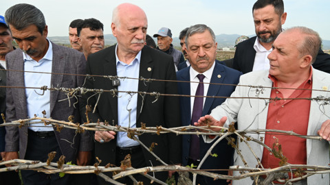 Türkiye Ziraat Odaları Birliği (TZOB) Genel Başkanı Şemsi Bayraktar, Manisa'nın Şehzadeler ve Saruhanlı ilçelerinde zirai dondan etkilenen üzüm bağlarında incelemelerde bulundu.