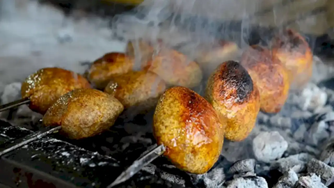 Şişler, köz veya mangal, az miktarda katı yağ