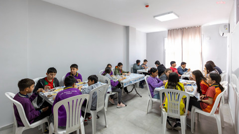 Dezavantajlı bölgelerde açılan ve eğitimde fırsat eşitliği yaratan Büyükşehir Belediyesi Eğitim ve Öğretimi Destekleme Kurs Merkezleri'nde ders gören 5, 6, 7 ve 8. sınıf öğrencileri, yemek imkânından faydalanıyor.