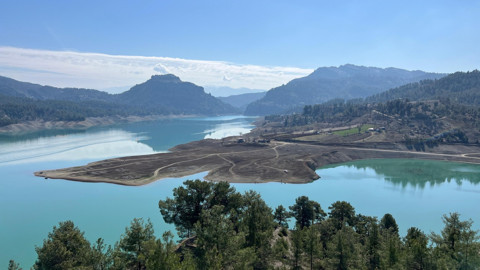 Kahramanmaraş’ın Onikişubat ilçesindeki Menzelet Barajı altında kalan eski yerleşim yeri su çekilmesi sonucu ortaya çıktı.