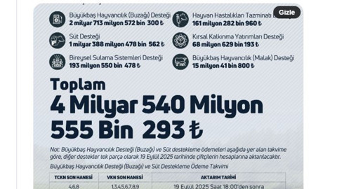 Tarım ve Orman Bakanlığı, çiftçilere 4 milyar 540 milyon TL tutarında destek ödemesinin bugün hesaplara aktarıldığını duyurdu