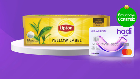 Türkiye'nin en büyük dijital bankası TOM Bank, Yanındaki Banka yaklaşımıyla kullanıcılarının ev ekonomilerine katkı sağlamaya devam ediyor. Hadi Kredi Kartı ile A101'den alışveriş yapan müşterileri, Lipton Yellow Label 48'li Demlik Poşet Çay'ı her ay bedava alabiliyor. Hadi kredi kartları ömür boyu ücretsiz.