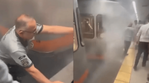 Durakta metronun kapıları açıldı ve tüm yolcular hızlı bir şekilde tahliye edilerek güvenli bir alana alındı. İstasyonu kısa sürede duman kaplamasıyla birlikte güvenlik görevlileri, yanlarında bulunan yangın söndürme tüpleriyle alevlere anında müdahale etti.