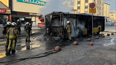 Ümraniye'de İETT otobüsü yanarak kullanılamaz hale geldi. Otobüsünün arka kısmından duman çıkmaya başladı durumu fark eden yolcular şoförü uyardı. Polis ekipleri, yolu trafiğe kapatırken oluşan yoğun duman etrafa yayıldı.
