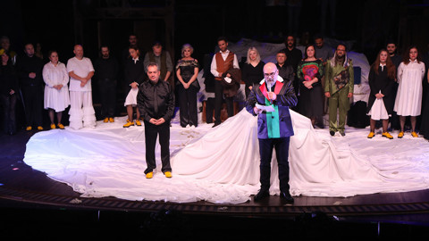 Oyunun ardından sahneye çıkan Urağ, seyircilere seslendi. İsrail’in katliamlarını hatırlatan Urağ, “Tarih boyunca ilk kez birileri çıkıp gözümüzün içine baka baka çocuklar öldürülebilir diyor.” ifadelerini kullandı.