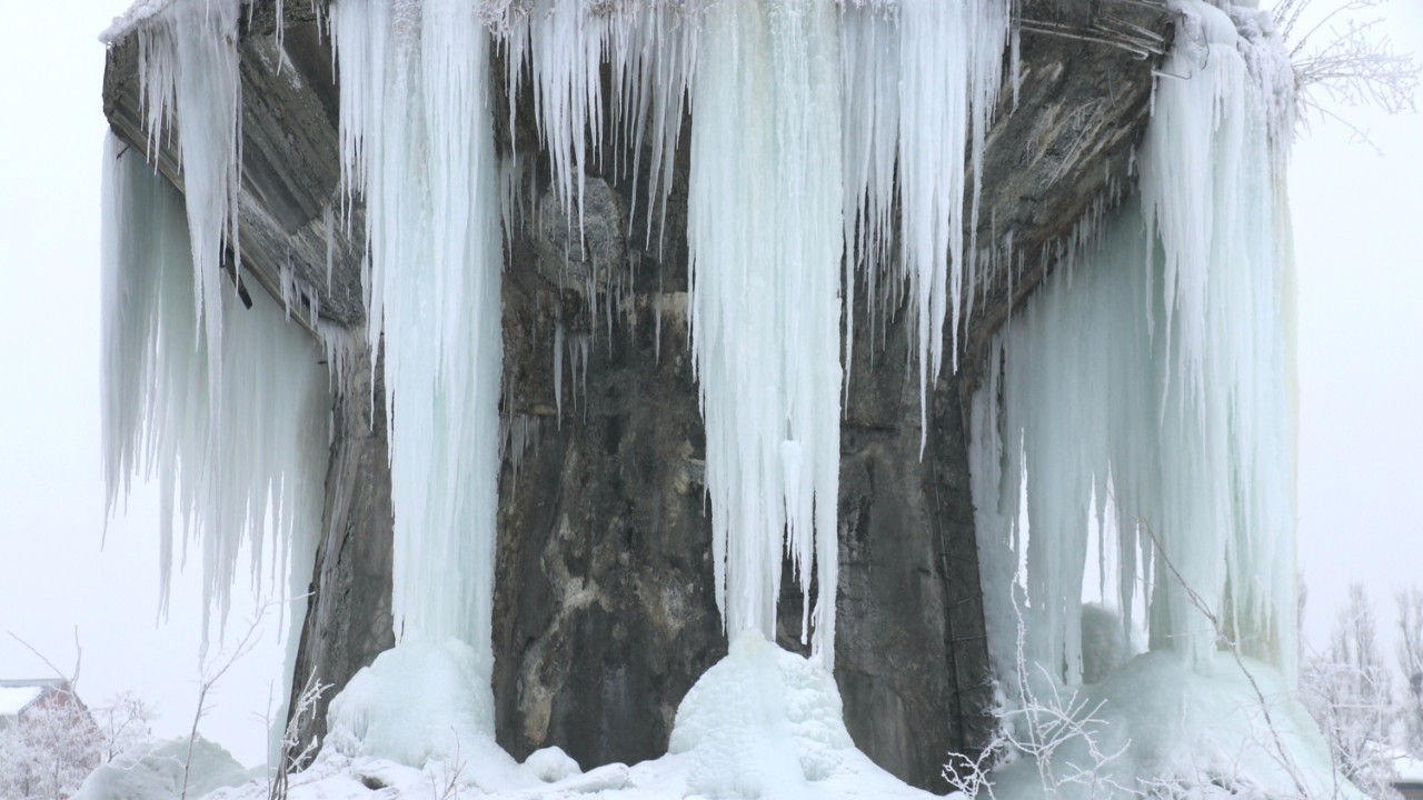 Ağrı'da kent merkezinde bulunan şehir mezarlığındaki su deposunun çatısında yaklaşık 4 metreyi bulan sarkıtlar oluştu.