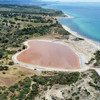 Çanakkale'nin Ezine ilçesinde yılın belli dönemlerinde pembeye bürünen ve kalp şekli ile dikkati çeken 'Kalpli Göl', dronla havadan görüntülendi.