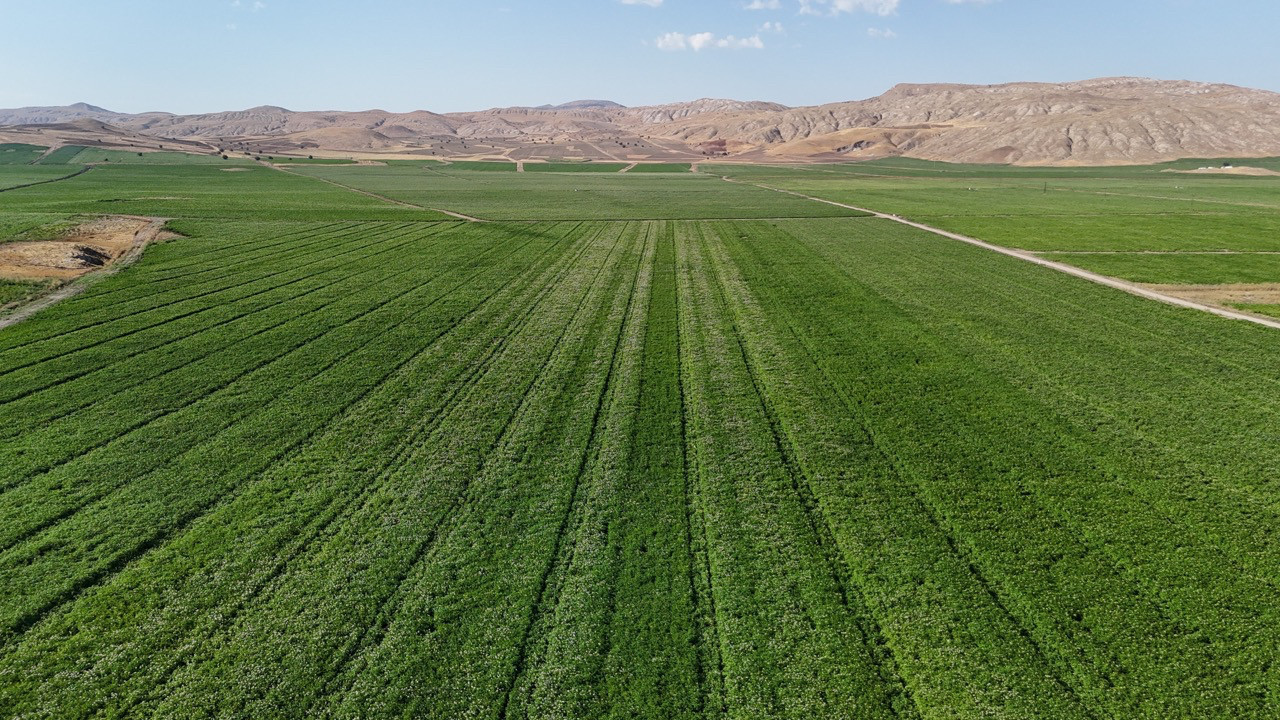 İlkbahar’da toprakla buluşan ve lezzet bakımından Türkiye’nin en iyi patatesi olan Sivas’ta hasat için gün sayılıyor. Hububat hasadının ardından sarı renge bürünen bozkırda büyüyen patatesler, Kızılırmak havzasını yeşile boyadı. Tohumluk patatesi üretiminde ilk, yemeklik patates üretiminde ise ilk 5 içerisinde yer alan Sivas’ta 110 bin dekar alanda ekim yapıldı. 2024 yılında 140 bin dekar alanda ekilen ve iklim değişikliğine bağlı kuraklık sonrası 2025 yılında 110 bin dekar alanda ekilen patateste 460 bin ton rekolte bekleniyor.