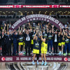 Büyük sevinç yaşayan Fenerbahçe Opet'in oyuncuları ve teknik heyeti, kupayla taraftarları selamladı.