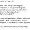 Bakan Yerlikaya, NSosyal hesabından yaptığı açıklamada, "Süre uzatılmayacak. Eski tip sürücü belgelerinin yenilenmesi için son tarih 31 Ekim 2025. Bu tarihten sonra eski tip sürücü belgeleri kullanılamayacak ve eski tip sürücü belgesini yenilemek isteyen vatandaşlarımız, indirimli 'harç değerli kağıt' ve 'hizmet bedelinden' yararlanamayacaktır. Temmuz ayında eski sürücü belgesini değiştirmek için 1 milyon 424 bin 516 başvuru alındı. Günlük ortalama 64 bin 750 eski tip sürücü belgesi değiştirildi" dedi.