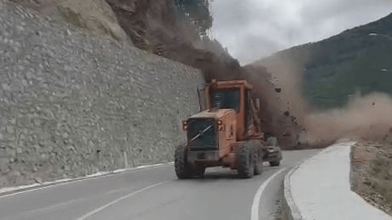 Artvin’de meydana gelen heyelan nedeniyle yamaçtan kopan kayalar kara yoluna düştü. Yolda çalışma yapan iş makinesi operatörü heyelandan son anda kurtuldu. O anlar, cep telefonu kamerasıyla kaydedildi.