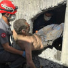 Kişinin bulunduğu yerden çıkarılması için itfaiye ekipleri, darbeli matkapla duvarı delmeye başladı. Yaklaşık 15 santimetre kalınlığındaki duvarı bir süre matkapla delen, ardından da beton kesme aletiyle çalışma yapan itfaiye ekibi, demirleri de keserek balyozla duvarı yıktı.