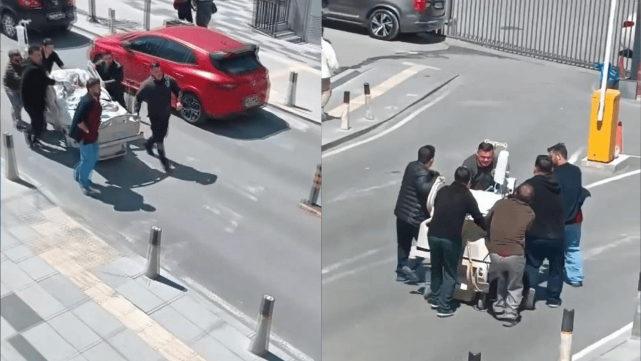 Hastane dışına çıkarılan hastanın taşınma anı kameralara yansıdı.