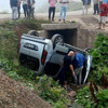 Araç, yolun sağ tarafındaki menfeze devrildi. Kazada sürücü Boran ile araçta bulunan Hatice B. (65), Mustafa K. (84) ve Ümmihan K. (81) yaralandı.