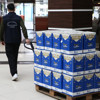 Sahada çalışan ekipler, içerisinde sıvı yağ, pirinç, bulgur, şeker, çay, makarna, salça, zeytin, reçel gibi 16 kalem temel gıda maddesinin bulunduğu paketleri vatandaşlara ücretsiz teslim ediyor.