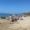 Türkiye'nin önemli turizm merkezlerinden Aydın'ın Kuşadası ilçesinde hava sıcaklığının artmasıyla sahillerde hareketlilik yaşanmaya başlandı.