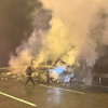 Yangın nedeniyle 3 şeridi kapatılan trafik akışı tek şeritten kontrollü olarak sağlanıyor.