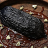 Ganaj için yumurta sarısı ve şekeri çırpın, ardından erimiş çikolata ve kremayı ekleyin. Jelatini karışıma ilave ederek kıvam kazandırın. Kaplama kısmında bitter çikolata ve aktif karbon kullanılarak tatlıya kömür efekti veriliyor. Bu sayede tabak hem göz alıcı hem de gastronomik açıdan etkileyici bir hale geliyor.