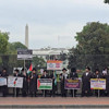 Beyaz Saray önündeki Pennsylvania Caddesi'nde bir araya gelen göstericiler, ellerinde İsrail saldırılarında öldürülen Filistinlilerin ve İsrailli esirlerin fotoğraflarını taşıdı.