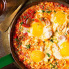 Soğanları ince ince doğrayın ve yağda pembeleşene kadar kavurun. Ardından biberleri ekleyin. Yumuşayınca domatesleri ilave edin. Domatesler suyunu çekince yumurtaları kırın. Karıştırarak veya sade bırakılarak pişirilebilir. Baharatlarla tatlandırıp sıcak servis edin.