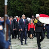 Aslanlı Yol'dan yürüyerek Gazi Mustafa Kemal Atatürk'ün mozolesine gelen heyet, TBMM Başkanı Kurtulmuş'un mozoleye çelenk bırakmasının ardından saygı duruşunda bulundu ve İstiklal Marşı'nı okudu.