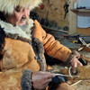 Sinciang Altay İli Lasty köyünde yaşayan 70 yaşındaki Slambek Şakahş, oğlu Kuanyşbek ile birlikte her birkaç günde bir atölyeye geliyor: Kendinden emin ve usta bir şekilde huş ağacı tahtalarına delikler açıyor, ipler geçiriyor ve kürklü kayak takımları yapıyorlar.